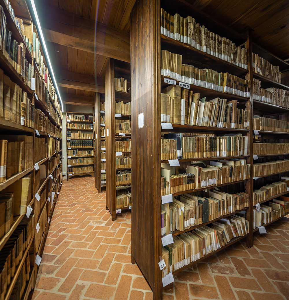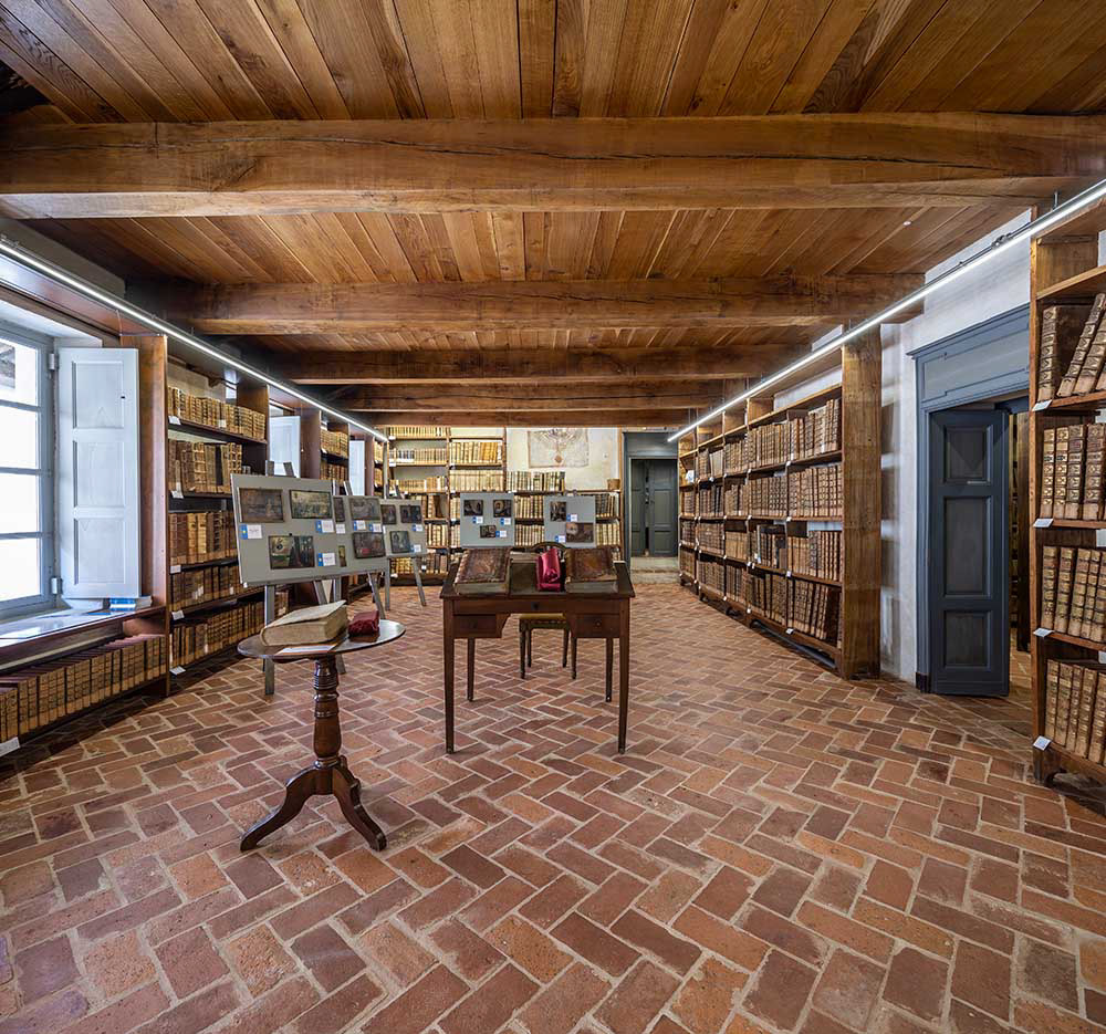 Papa Giulio II della Rovere erigeva la Diocesi di Saluzzo il 29 ottobre 1511, elevando il borgo a Città, in virtù delle azioni di politica religiosa dei marchesi Ludovico II e Margherita di Foix. Il Palazzo dei Vescovi sorse a partire dal 1517 su di un palinsesto di strutture preesistenti acquistate sotto l’episcopato di Giuliano Tornabuoni, comprendenti al piano terreno la chiesa di San Sebastiano fondata nel 1403, e rimase dimora e sede della Curia sino agli anni Ottanta del XX secolo. Il complesso raggiunse la sua unitarietà nel 1575 per volere di mons. Giovanni Maria Tapparelli, come denuncia la decorazione tardo manierista della facciata prospiciente via Volta (detta anche dei portici scuri). La dimora venne riplasmata nel primo decennio del Settecento per iniziativa di mons. Carlo Giuseppe Morozzo, ricordato nello stemma marmoreo sul prospetto interno del cortile d’onore: i documenti attestano il gusto personale del prelato nell’allestimento degli ambienti, con il ricorso a tappezzerie in seta andate perdute. Con l’istituzione del Museo Diocesano, l’1 settembre 2011, e l’iscrizione all’Associazione Musei Ecclesiastici Italiani (A.M.E.I.), gli ambienti del piano nobile hanno iniziato ad accogliere collezioni permanenti ed eventi espositivi di arte antica e contemporanea. L’assetto attuale delle sale, denominate secondo l’antico cerimoniale e valorizzate dal restauro ultimato per le celebrazioni dei cinquecento anni della Diocesi, è quello assunto a partire dal 1834 con i lavori affidati dal vescovo Antonio Podestà all’architetto saluzzese Michele Borda, impegnato nella realizzazione dello scalone cui si accede da via Maghelona 7, e sostanzialmente cristallizzato nei testimoniali di stato del 1903. Il Salone degli Stemmi, dal soffitto a cassettoni seicentesco, venne affrescato da Giovanni Gallotti nel 1885, riprendendo le serie di armi gentilizie dei prelati saluzzesi nelle stesure di XVII e XVIII secolo. La Cappella di San Sebastiano al piano nobile ebbe funzione di luogo di culto estivo, in uso tra marzo e ottobre: stante le condizioni microclimatiche, è stata scelta dal dicembre 2018 in via sperimentale come ricovero temporaneo del polittico di Celle di Macra di Hans Clemer. Fulcro del percorso di visita, assunse la conformazione attuale presumibilmente sotto l’episcopato di Nicolao Lepori (1668-1686). La decorazione che oggi la caratterizza si deve al pittore decoratore Gilardini e risale al 1857. La Cappella rimase in uso sino agli anni Ottanta per la celebrazione eucaristica, per la recita del breviario e del rosario; ancora mons. Egidio Luigi Lanzo, vescovo sino al 1973, vi conferiva gli ordini sacri. L’altare in essa riallestito reca lo stemma del vescovo Alfonso Buglioni di Monale. Tra le opere più importanti qui custodite spiccano per qualità il reliquiario fiammingo donato nel 1642 da Cristina di Francia alla Collegiata di Revello, per custodirvi le reliquie di san Costanzo, e, parimenti dalla Collegiata di Revello, la croce processionale di orafo franco-piemontese, databile tra XV e XVI secolo. Nel sacello è inoltre depositata la croce d’altare da Pratavecchia di Dronero, recante incastonato al suo interno un raro smalto trecentesco raffigurante il Volto di Cristo. Nella stanza che ebbe la denominazione di Ufficio Nuovo del Vescovo, oltre alla quadreria dei Seminari, una citazione particolare merita il presepio genovese e napoletano dalla chiesa parrocchiale di Cardè, mirabile nucleo di statuine databili tra Sette e Ottocento, in legno e terracotta dipinti, vetro, abiti e monili antichi. Stante la natura di luogo per la conservazione e l’esposizione dei beni culturali della Diocesi, dal 2013, nelle due maniche del secondo piano, il Palazzo ha accolto la Biblioteca Diocesana Saluzzo, iscritta al SiBEP (Sistema Biblioteche Ecclesiastiche Piemonte). Parte degli ambienti che la compongono dovettero coincidere con il granaio tenuto dal Capitolo nel palazzo vescovile, documentato nell’ultimo quarto del Seicento. L’istituto culturale ospita il patrimonio librario dei tre seminari storici di Saluzzo. La Biblioteca del Seminario San Nicola – trasferita da via San Nicola al Palazzo dei Vescovi –, riflette la sua composita costituzione. Il Seminario vescovile San Nicola è storicamente il terzo dei seminari di Saluzzo: dopo vari infruttuosi tentativi di istituzione, l’iniziativa fu assunta dapprima dal Capitolo della Cattedrale, successivamente da un abate-vicario generale, infine (dal 1817) dai vescovi stessi. La Biblioteca del Seminario, in quasi 250 anni complessivi di vita attiva – dalle origini del primo seminario nel 1732 alla dismissione del San Nicola nel 1976 –, si è arricchita di volumi preziosi per qualità, antichità e numero. Il patrimonio librario dei tre seminari storici comprende anche volumi provenienti occasionalmente dalle biblioteche di vescovi diocesani, del Capitolo della Cattedrale, degli Ordini religiosi della città e del territorio (passando per le raccolte librarie dei Gesuiti e delle Missioni cappuccine di Saluzzo e delle valli, sino alla Biblioteca nuova di Staffarda); è infine divenuta luogo di deposito del patrimonio librario delle biblioteche parrocchiali a rischio dispersione.